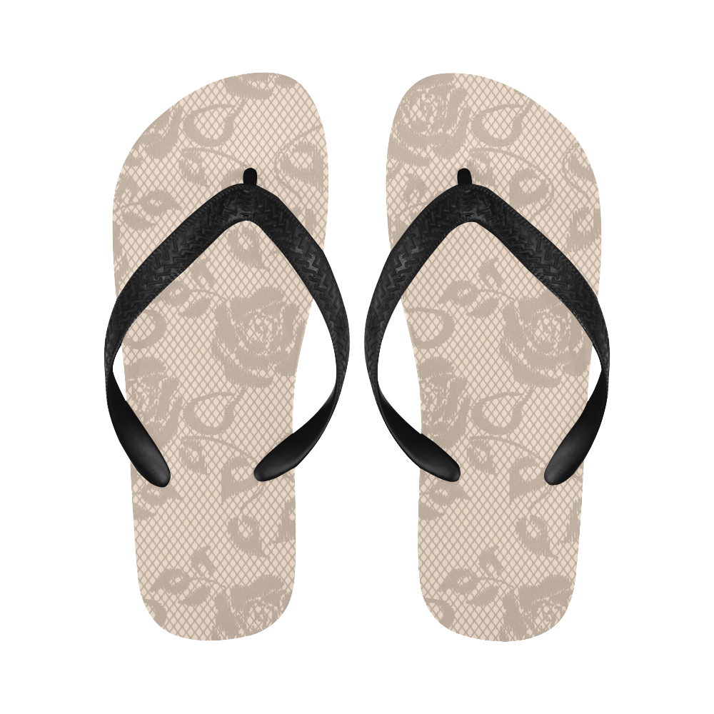 Brown Roses, Rose Flowers, Lace Effect, Floral Pattern Flip Flops for Men/Women (Model 040)